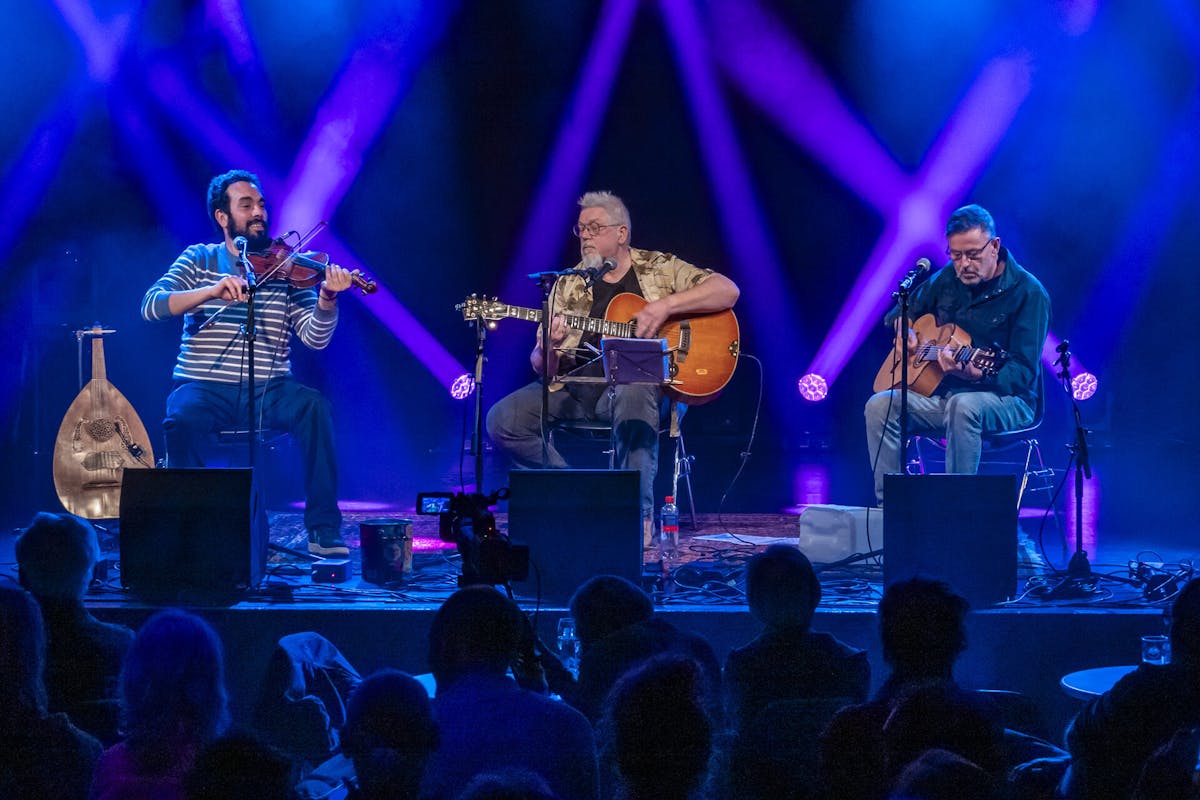 Foto: Wissem Ziadi, Sjef Hermans en Ries de Vuyst tijdens Songs from the Heart in poppodium De Spot in Middelburg (foto Tineke Boer).