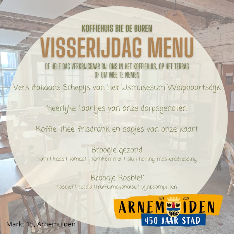 Van harte welkom tijdens de Visserijdag. Deze dag zijn we extra geopend tijdens de gezellige braderie in het dorp!