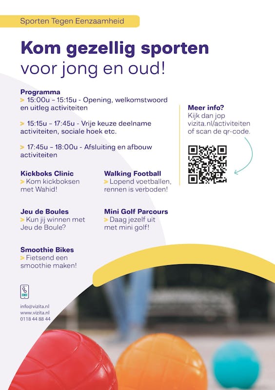 Het evenement bestaat uit verschillende activiteiten voor jong en oud, in het kader van beweging en het tegengaan van eenzaamheid door middel van teamsport en -activiteiten.
