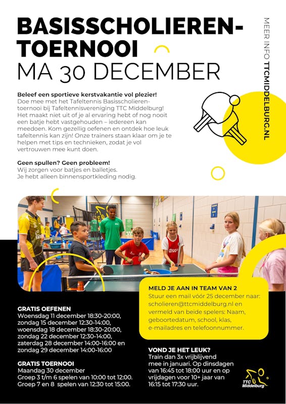 Wij zijn TTC Middelburg, de tafeltennisvereniging in Middelburg. Bij ons ben je aan het juiste adres voor tafeltennis, van jong (vanaf 4 ......