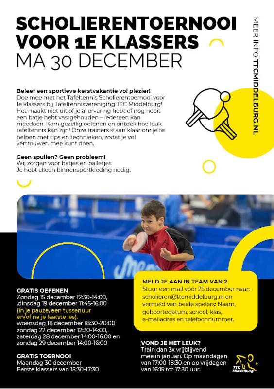 Wij zijn TTC Middelburg, de tafeltennisvereniging in Middelburg. Bij ons ben je aan het juiste adres voor tafeltennis, van jong (vanaf 4 ......