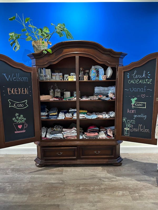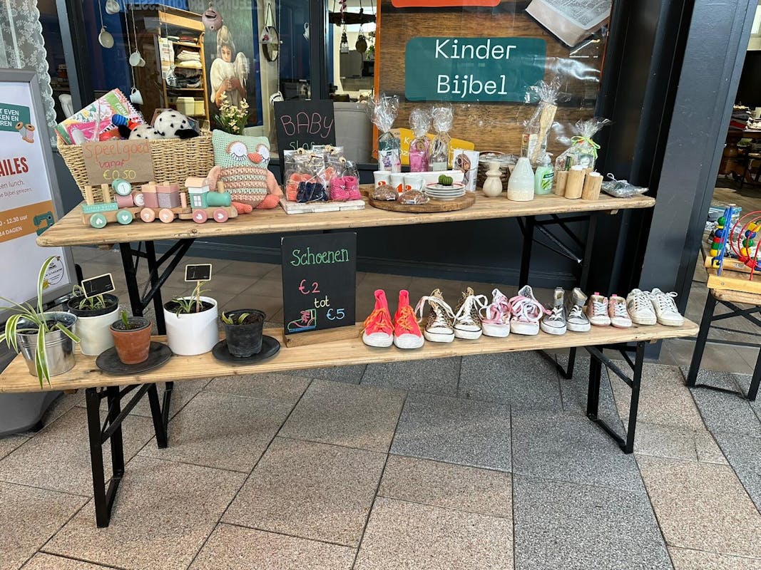 We verkopen kleding, schoenen, bak producten, leuke cadeautjes, plantjes (en nog veel meer) tegen lage prijzen.