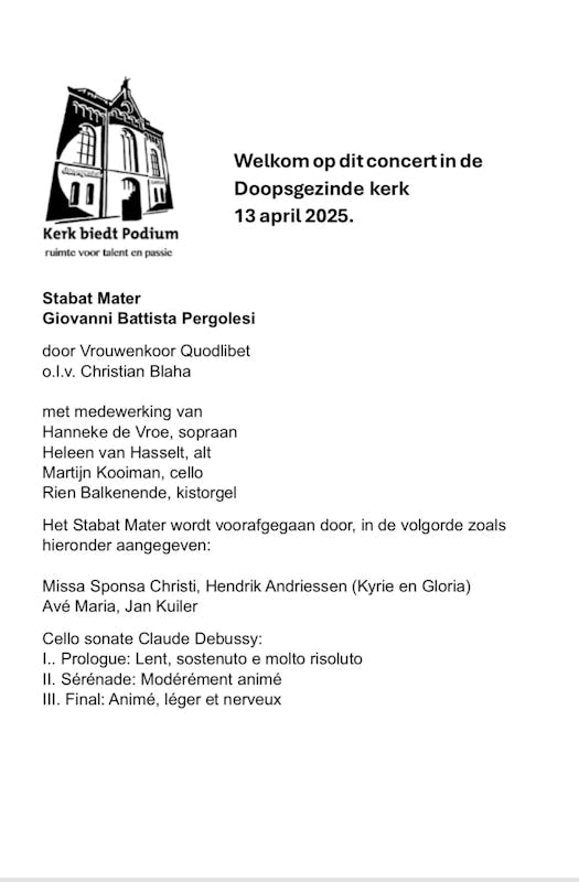 Een bijzonder zondagmiddagconcert -13 april 15.00u- aan het begin van de week voor Pasen (Stille Week).