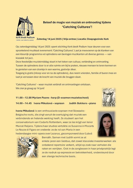 Als feestelijke afsluiting van het seizoen 2024/2025 organiseert Kerk biedt Podium op zaterdag 14 juni een dag vol muzikale verrassingen.