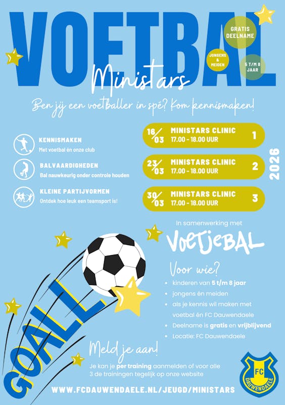 In samenwerking met Voetjebal organiseert FC Dauwendaele in maart drie gratis Ministars-clinics speciaal voor jonge talentjes.