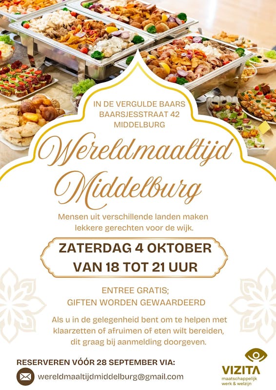 In de wijken ’t Zand, Stromenwijk en Rittenburg in Middelburg wordt een gratis wereldmaaltijd georganiseerd. Mensen, die zijn geboren in verschillende landen en hun culinaire tradities uit hun thuisland meegenomen hebben, bereiden een feestmaal waarin verschillende smaken en culturen samenkomen. De maaltijd is voor buurtbewoners, die de kans krijgen om gerechten te proeven die ze misschien nog nooit eerder hebben geproefd.