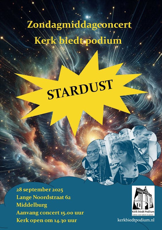Het nieuwe seizoen wordt op zondag 28 september feestelijk geopend door het trio Stardust: drie muzikanten die een gevarieerd programma brengen met muziek uit de jaren ’70 tot nu. Ondergetekende maakt deel uit van dit ensemble.