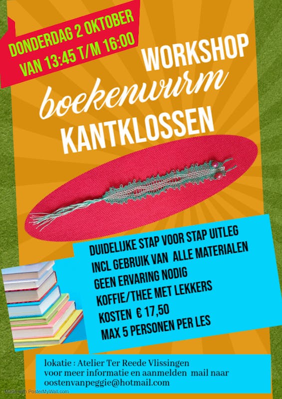 Op donderdag 2 oktober gaan we een "boekenwurm" Kantklossen. Deze kun je al boekenlegger gebruiken.