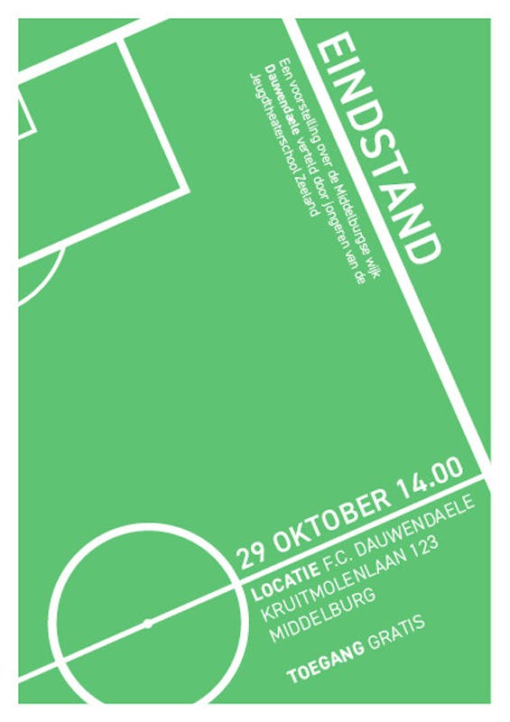 Kom op 29 oktober naar Sportpark Kruitmolenlaan om te genieten van de voorstelling ‘Eindstand’.