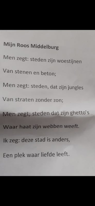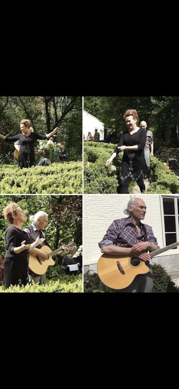 Gezongen tekst: Mijn Roos Middelburg met optreden van Peter Jongepier met partner Ingrid Borger, in het Toorenvliedt labyrint.
