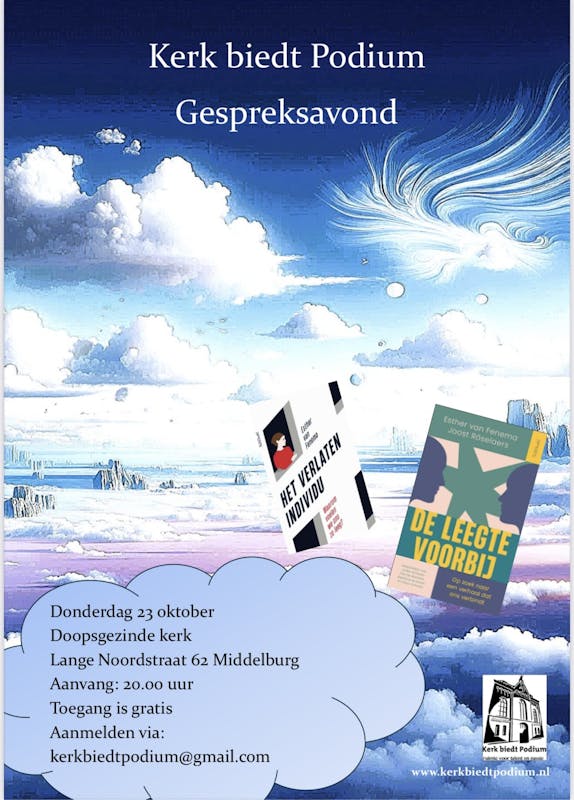 Onderwerp: Het Verlaten Individu en dat n.a.v. van twee boeken. ‘Het verlaten individu’ en ‘De leegte voorbij’. Beide van Esther van Fenema (en Joost Roselaers).