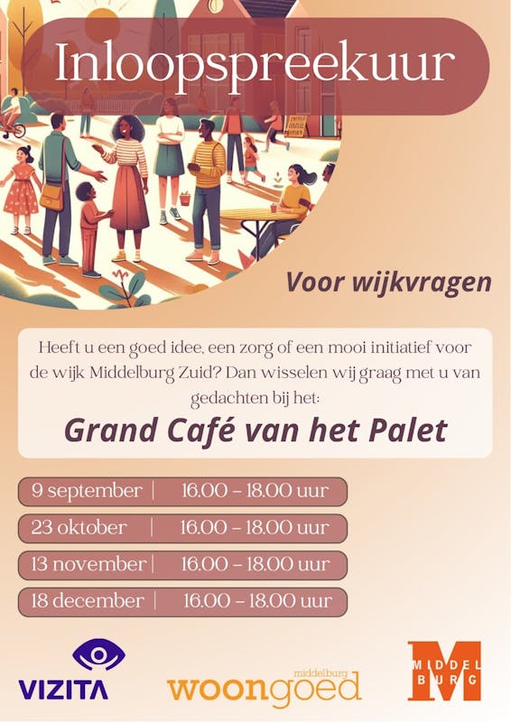 Kom langs met je vragen, ideeën of gewoon voor een praatje. Wij, Vizita, Woongoed en Gemeente Middelburg, verwelkomen je graag om vragen te bespreken of om informatie of ideeën uit te wisselen.