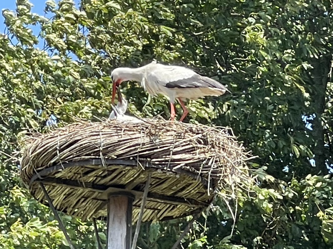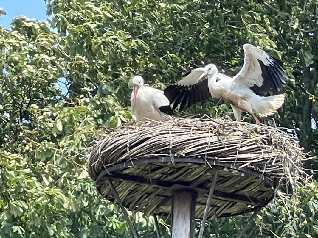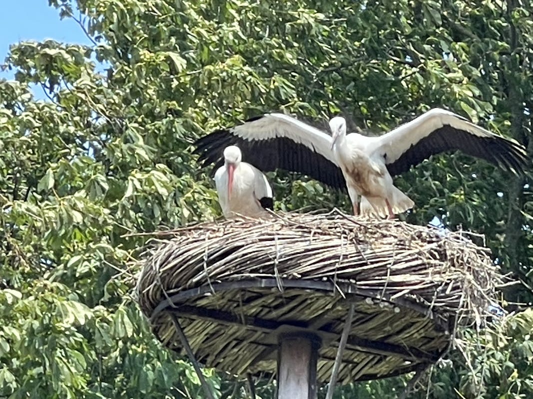 De twee jonge ooievaars op het nest achter vogelopvang De Mikke in het park Toorenvliedt groeien als kool. Dagelijks zijn ze bezig met vliegoefeningen. Het blijft nog bij fladderen en wat opspringen, maar wie ze nog wil zien moet snel zijn. Als ze het vliegen eenmaal onder de knie krijgen en fit genoeg zijn dan vliegen ze uit. Overwinteren doen ze in Afrika dus de kleintjes die nu al bijna net zo groot zijn als ze ouders moeten een behoorlijke inspanning leveren.