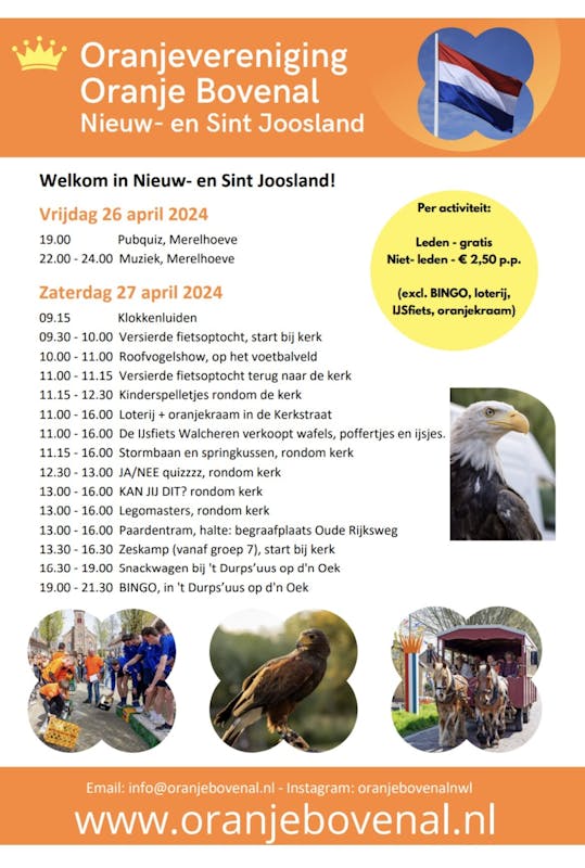 Zo viert Nieuw- en Sint Joosland SAMEN Koningsdag: http://oranjebovenal.nl/wp-content/uploads/2024/04/Boekje-2024-final.pdf