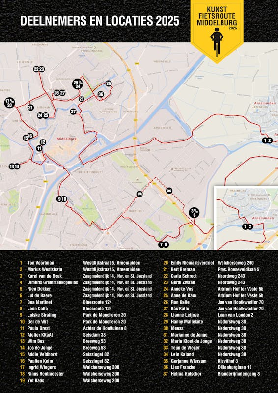 een route afleggen en kunstenaars bezoeken die in het groene buitengebied en in de bij Middelburg behorende dorpskernen hun werk tonen.