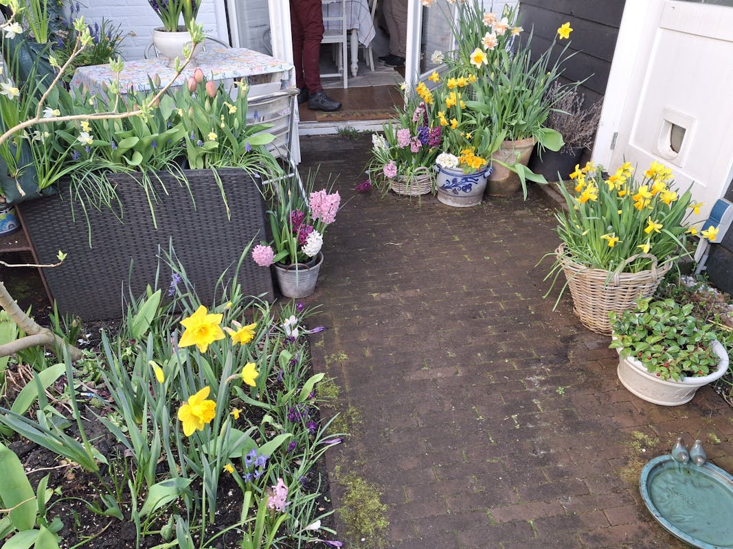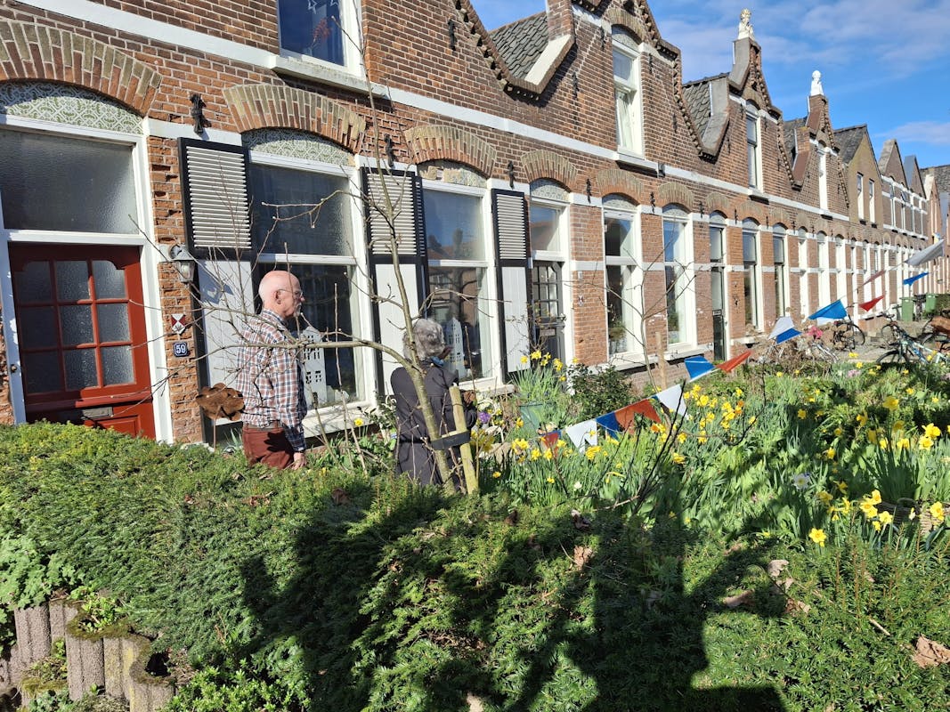 Zijn missie een bloembollen lint...de buurvrouw en de Zeeuwse gronden om de hoek aan de Noordsingel doen al bescheiden mee....