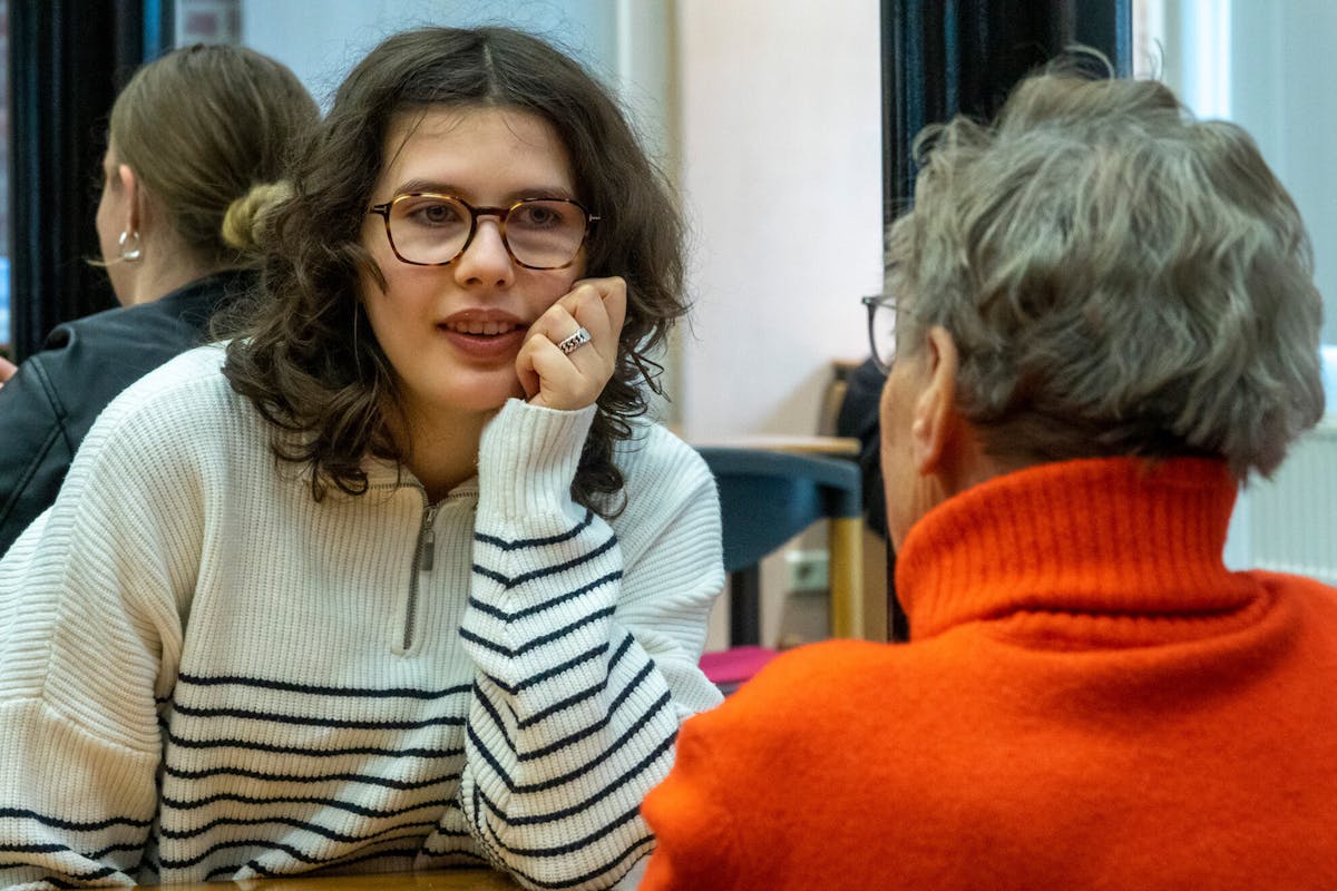 De eerstejaarsstudenten Social Work van de HZ University of Applied Sciences volgen van februari t/m april 2024 verschillende cursussen waarin o.a. de doelgroep 'ouderen' centraal staat. Een ontmoeting en gesprek met ouderen is een onderdeel van het leerproces.