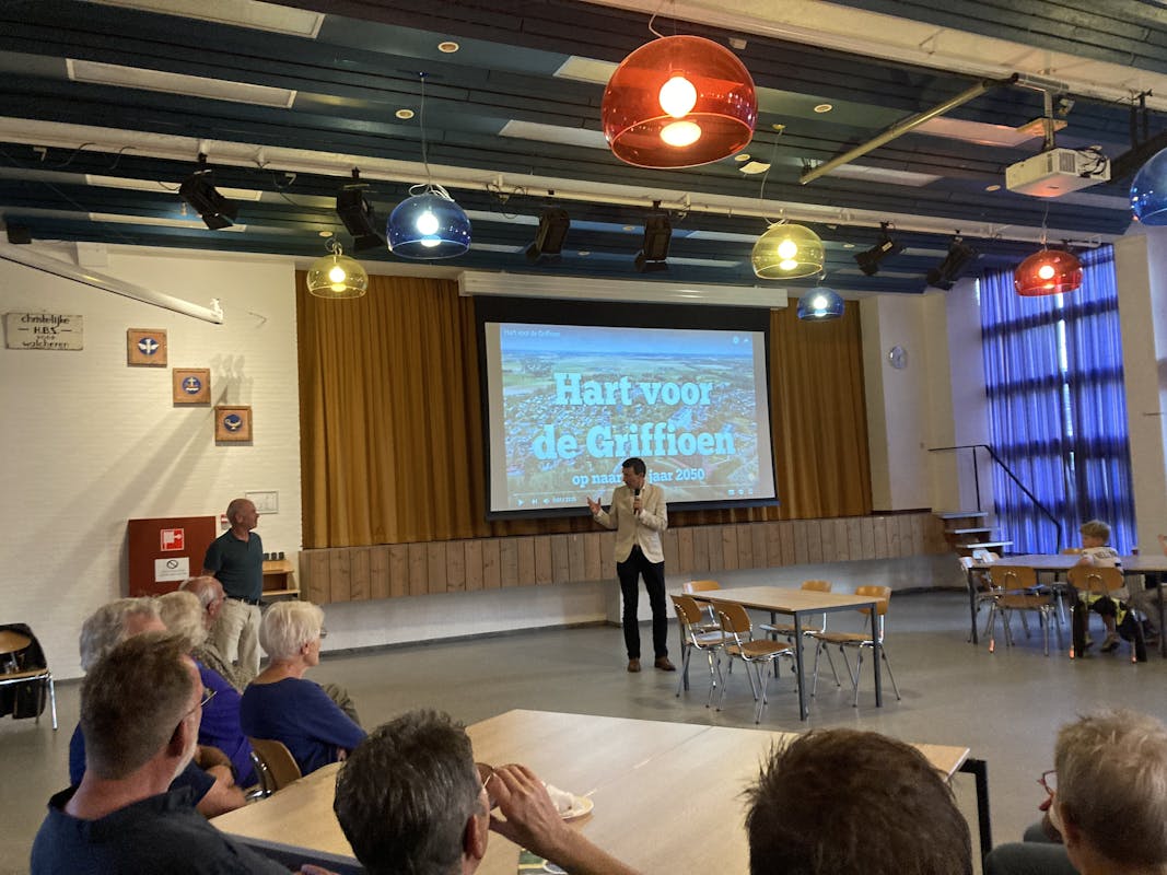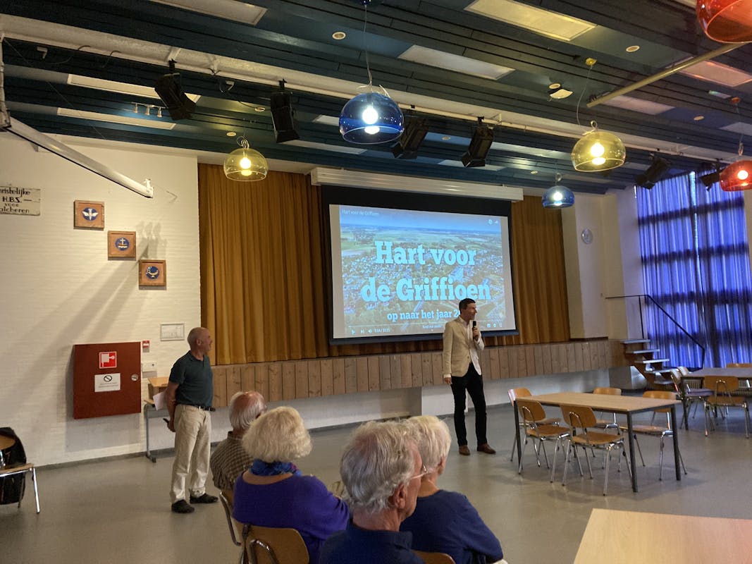 Na de film gaf Leo Adriaanse een update over ontwikkelingen in de wijk. Daarnaast riep hij wijkbewoners op om mee te denken en mee te doen met Team Onze Griffioen!