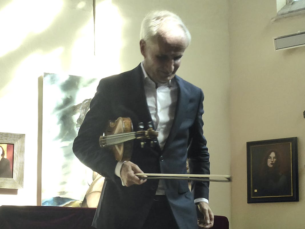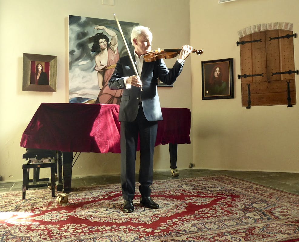 Hij speelt op zijn viool Solo Sonates & Partitas van J.S, Bach