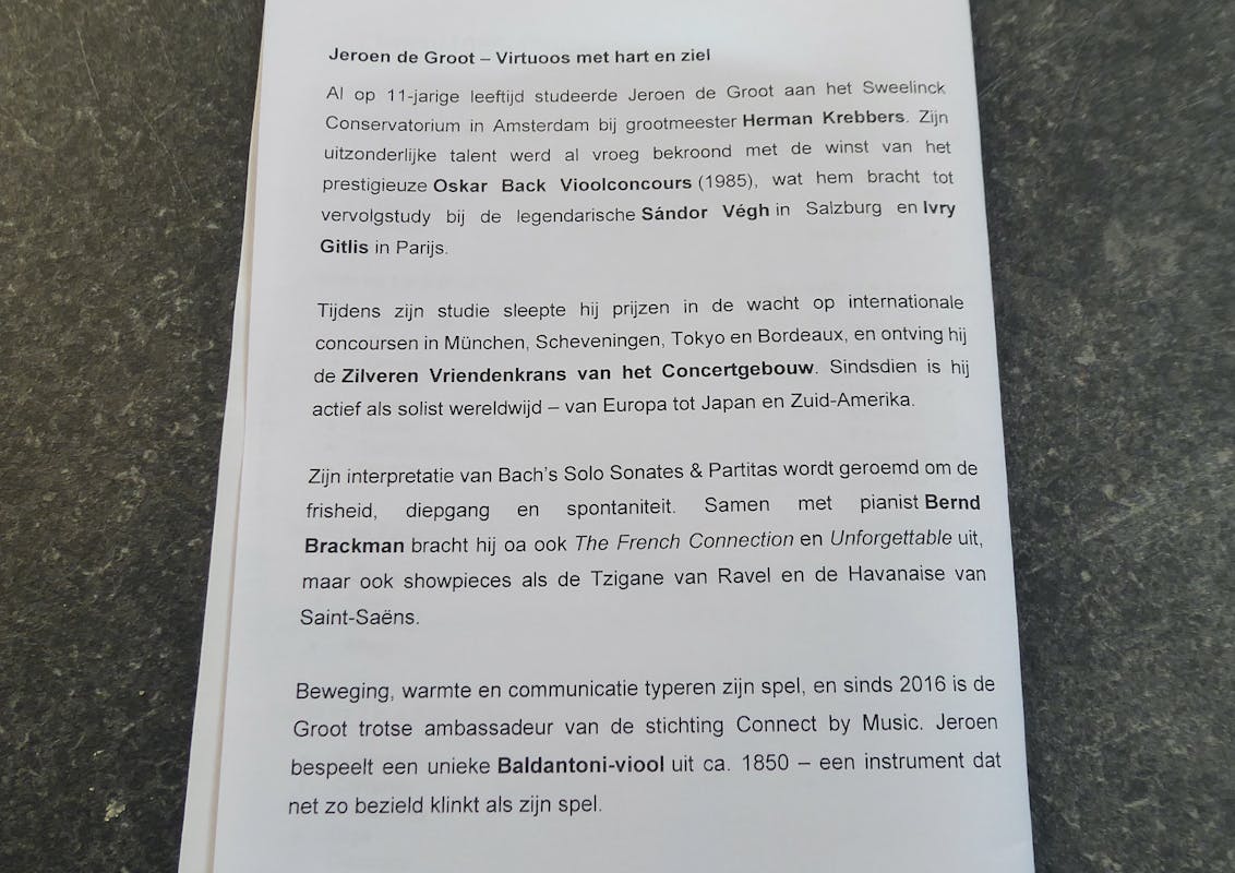 Muziek voor de ziel en gespeeld door Jeroen met hart en ziel.