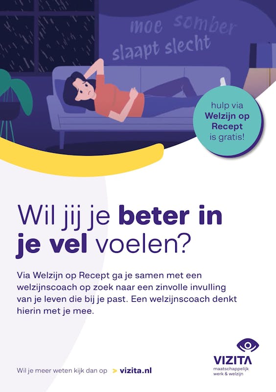 Via Welzijn op Recept ga je samen met een welzijnscoach op zoek naar een zinvolle invulling van je leven die bij je past. Een welzijnscoach denkt hierin met je mee.
