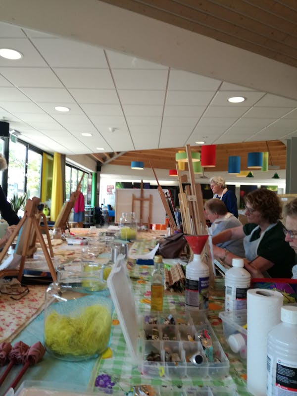 iedere Maandag: 14:00- 16:00 SCHILDEREN EN TEKENEN, wij hebben nog plaats voor één persoon, schilder-tekenleraar aanwezig. Iedere Woensdag : 14:00-16:00 OPEN PODIUM, een gezellige dag met meerdere groepen: Koersballen, KCD, Kaarten maken, Handvaardigheid:breien, haken, borduren, en Knutselen en Workshops waarin we met gebruik van niet al te moeilijke technieken en materialen leuke creaties maken, die voor jong en oud te doen zijn, heeft u een handicap, dan wordt u geholpen door medeleden. Er is zelfs een blinde dame die breit, u ziet mogelijkheden genoeg.