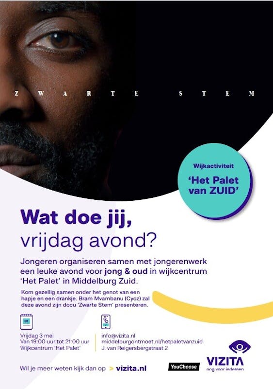 Kom gezellig samen onder het genot van een hapje en een drankje. Bram Mvambanu (Cycz) zal deze avond zijn docu 'Zwarte Stem' presenteren.